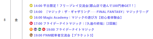 【店舗情報】 本日も晴れる屋郡山店にご来店いただき ありがとうございました‼️ 8/8(金)は14時オープンです☀️ ✨注目イベント✨ 1⃣FNM:『久遠の終端』(17時) 2⃣FNM(19時) 3⃣FNM統率者交流会【ブラケット3】 明日もご来店お待ちしております🙇♂️ 詳細はこちら🔽 hareruyamtg.com/ja/events/?sho…
