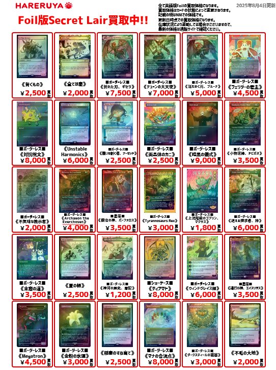 【買取情報】 『Secret Lair』の買取大募集中✨ 【Foil】■ボーダーレス■《マナの合流点》[SLD] ¥8,000 ■ボーダーレス■《Cabin of the Dead》[SLD] ¥5,000 (1150)《スリヴァー軍団》[SLD] ¥3,000 スリーブ抜きやソートは不要‼️ 買取は『晴れる屋郡山店』までお持ち込みください☺️