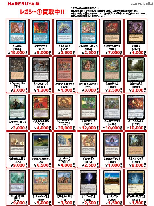 【#晴れ郡イベント】 明日開催注目イベントは、、、 ✅8/3(日)13:00~『THE LAST SUN 2025 レガシー予選』 hareruyamtg.com/ja/events/4637… 年末開催の本選への参加権は誰の手に⁉️ 🏆権利獲得時賞品🏆 権利+10,000pt+限定プレイマット 🎉ランダム賞🎉 限定スリーブ ご参加お待ちしております🙏
