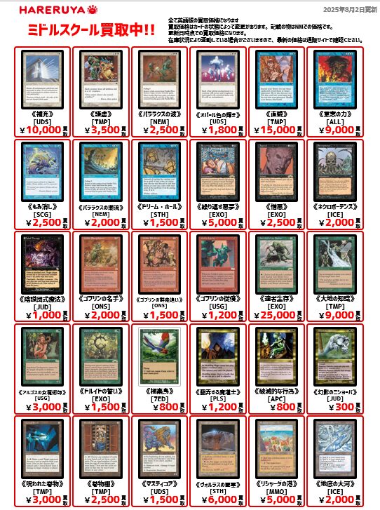 【買取情報】 ✨ミドルスクール買取募集中✨ 🔽英語版参考価格はコチラ 《適者生存》[EXO] 25,000円買取 《直観》[TMP] 15,000円買取 《補充》[UDS] 10,000円買取 《パララクスの潮流》[NEM] 2,000円買取 1枚からでもお気軽にお持ち込みください‼️ ご来店お待ちしております😆