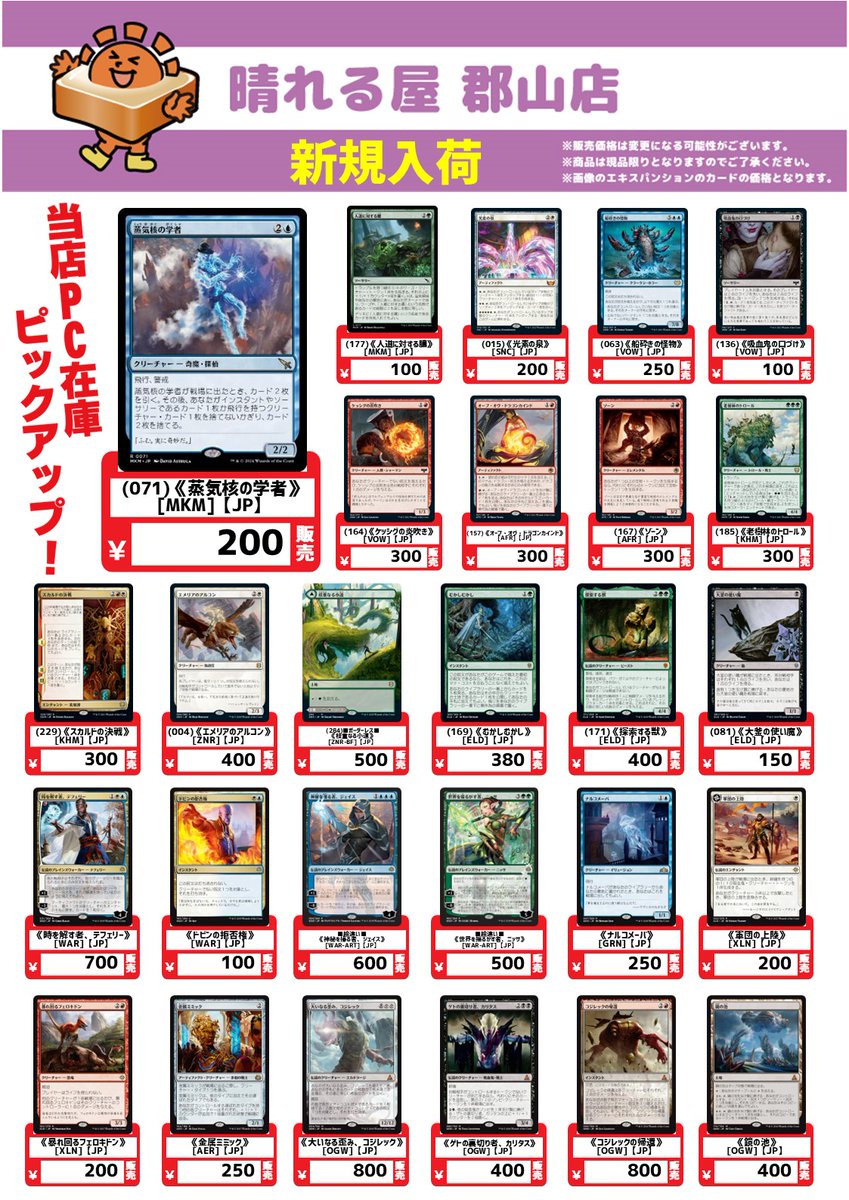 【#晴れ郡商品情報】 PC注文在庫にカードを追加しました‼️ 《蒸気核の学者/Steamcore Scholar》 戦場に出たとき手札を入れ替えてくれる優秀なクリーチャーです かなりお求め安くなったので今の内かも☺️ ご注文はこちらから🔽 shops.hareruyamtg.com/koriyama/produ…