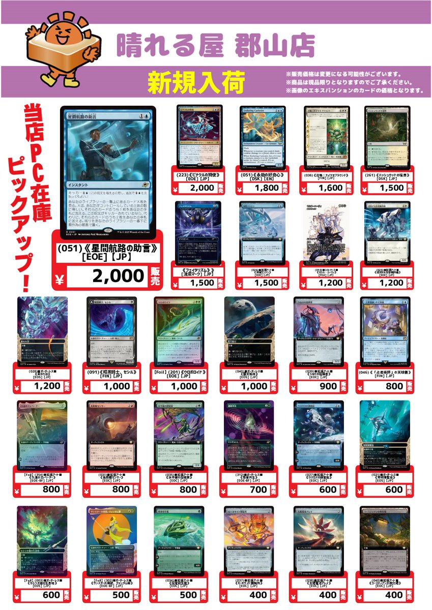 【店舗情報】 本日も晴れる屋郡山店にご来店いただき ありがとうございました‼️ 7/26(土)は12時オープンです☀️ ✨注目イベント✨ 1⃣ 『久遠の終端』プレリリース 2⃣晴れる屋スペシャルカップレガシー 明日も皆様のご来店、お待ちしております🙇♂️ 詳細はこちら🔽 hareruyamtg.com/ja/events/