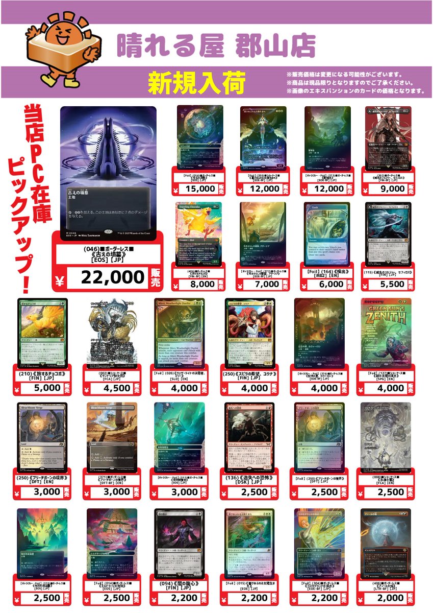 【店舗情報】 いらっしゃいませ☀️ 晴れる屋郡山店オープンしました‼️ 開催イベント一覧🔽 hareruyamtg.com/ja/events/ ✨本日の注目イベント✨ 1⃣ 『久遠の終端』プレリリース 2⃣晴れる屋スペシャルカップレガシー 本日も皆様のご来店お待ちしております😆