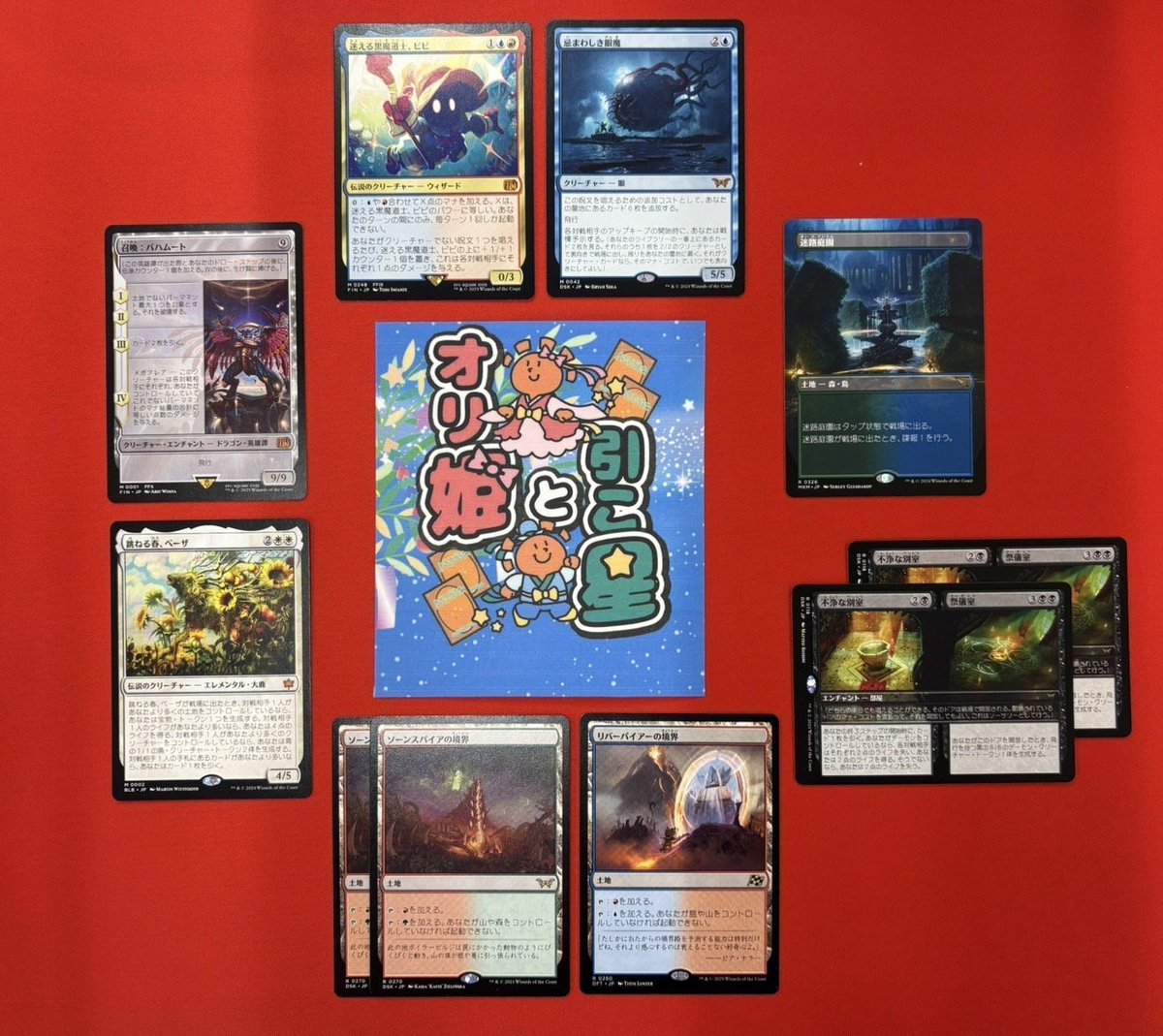 【#晴れ郡商品情報】 『オリ姫と引こ星』オリパ 3,000円Ver.‼️ スタンダードで使用できるカードだけを詰め込みました💪 境界ランドや諜報ランドも出てくるかも😎 🎯注目の一枚 《迷える黒魔道士、ビビ》🪄 《忌まわしき眼魔》👁️ 店内自販機にて展開中😆 ご来店お待ちしております