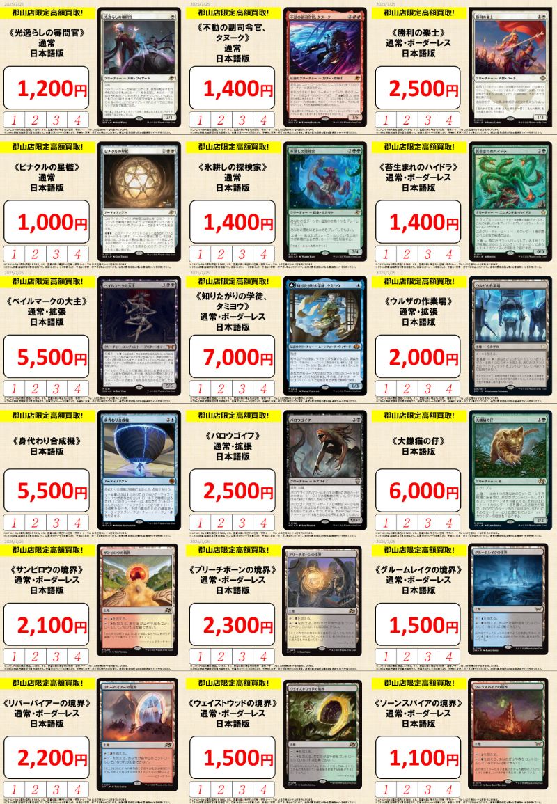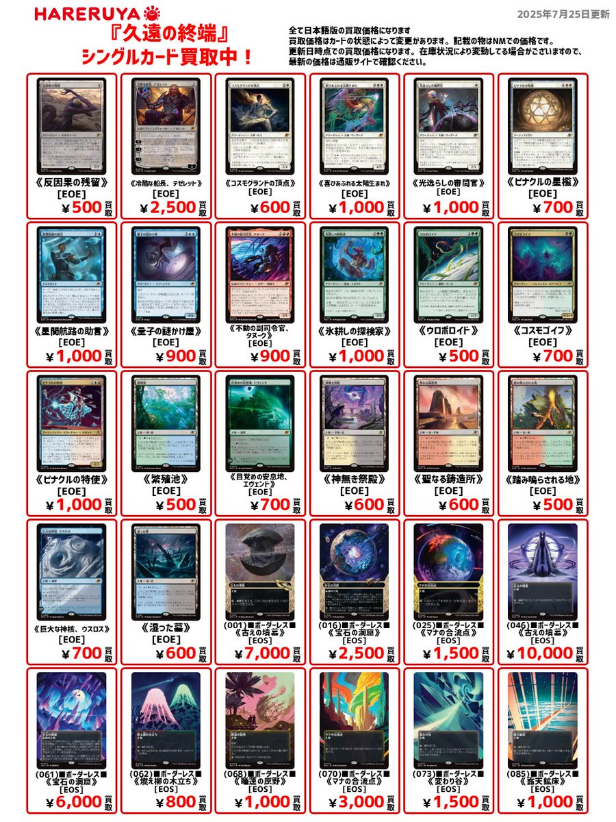 【買取情報】 『久遠の終端』買取スタート‼️🚀 🔽日本語・通常版の参考価格 《冷酷な船長、テゼレット》[EOE] ¥2,500 《喜びあふれる太陽生まれ》[EOE] ¥1,000 《光逸らしの審問官》[EOE] ¥1,000 《星間航路の助言》[EOE] ¥1,000 《氷耕しの探検家》[EOE] ¥1,000 ご来店お待ちしております🙇♂️