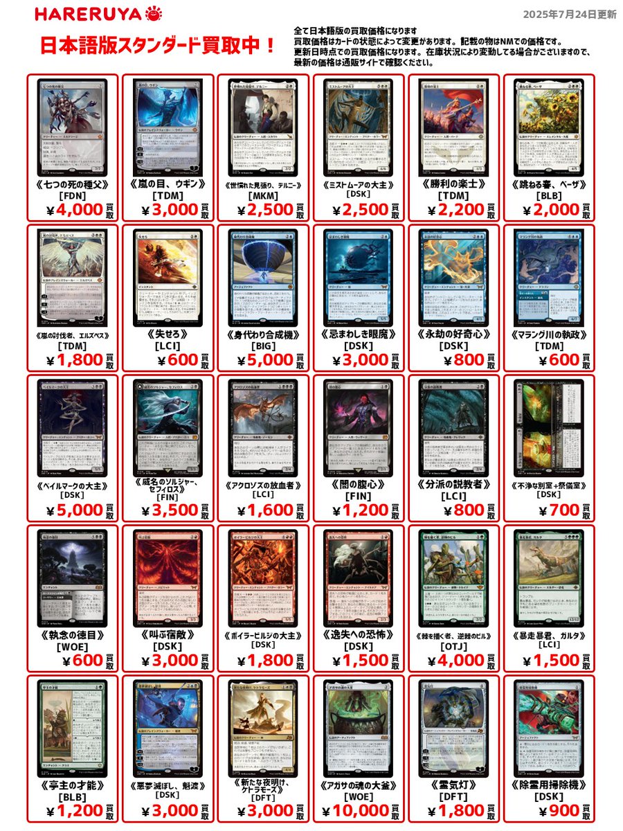 【買取情報】 フォーマット:スタンダード買取募集中です‼️ 日本語版の参考価格はコチラ🔽 《身代わり合成機》[BIG] ¥5,000🆙 《棘を播く者、逆棘のビル》[OTJ] ¥4,000🆙 《マラング川の執政》[TDM] ¥600🆙 1枚からでもお持ち込み🆗です✨ MTG関連ならぜひ晴れる屋郡山店までお持ち込みください‼️🙇♂️