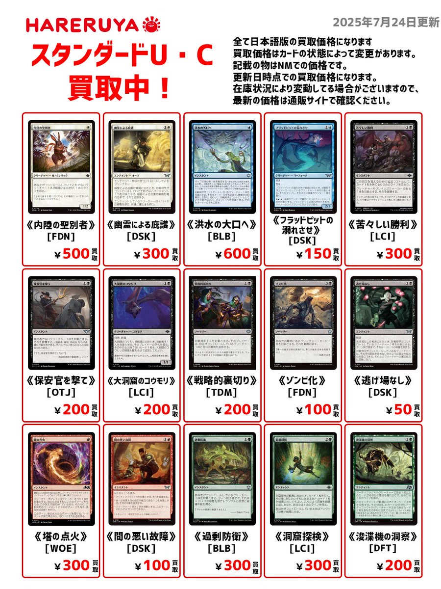 【買取情報】 🐸スタンダードUC・C買取募集🐸 値上がり品が多いですよ‼️👀 日本語版参考価格はこちら🔽 《洪水の大口へ》[BLB] ¥600🆙 《幽霊による庇護》[DSK] ¥300🆙 《洞窟探検》[LCI] ¥300🆙 《戦略的裏切り》[TDM] ¥200🆙 《フラッドピットの溺れさせ》[DSK] ¥150🆙 ご来店お待ちしております😆