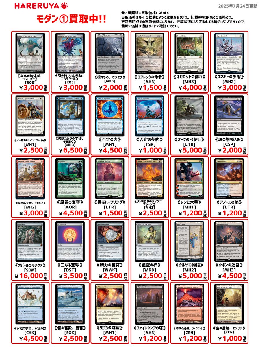 【買取情報】 🔥フォーマット:モダン買取募集中🔥 英語版の参考価格はコチラ🔽 《オパールのモックス》[SOM] ¥16,000 《知りたがりの学徒、タミヨウ》[MH3] ¥6,500 《オセロットの群れ》[MH3] ¥4,000 《穢すもの、ウラモグ》[MH3] ¥2,000🆙 1枚から査定いたします👍 お気軽にお持ち込みください😁