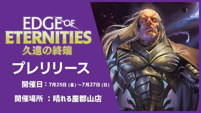【#晴れ郡イベント】 明日7/25(金)からは、、、 ✅『久遠の終端』プレリリース🎉 📅店舗開催日:7/25(金)~7/27(日) ついに明日から新環境👏 宇宙船や惑星、ワープやヴォイドなど、広大な宇宙世界を楽しみましょう‼️🪐 ご予約はこちらの各ページから🔽 hareruyamtg.com/ja/events/list…