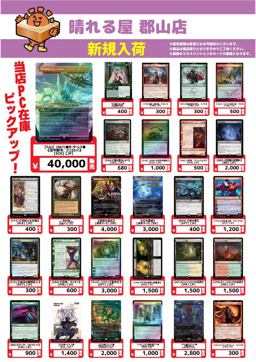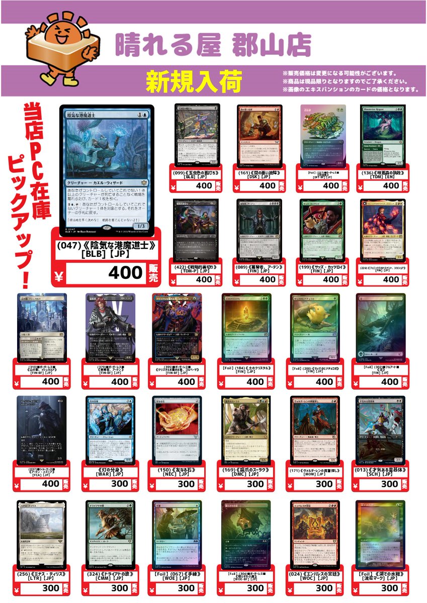 【店舗情報】 おはようございます☀️ 晴れる屋郡山店本日14時オープンです‼️ 開催イベント一覧🔽 hareruyamtg.com/ja/events/?sho… ✨本日の注目イベント✨ 1⃣ 木曜ブースタードラフト 2⃣木曜スタンダード 3⃣木曜モダン 本日も皆様のご来店お待ちしております🙏