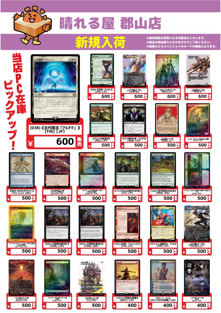 【#晴れ郡イベント】 ☀️最高のカードゲームをみんなで☀️ 〜MTGはじめて、1000円もらいませんか?〜 7/25(金)からは『久遠の終端』プレリリース🚀 飛び込むなら今‼️まさに今ですよ‼️👍 ご興味のある方は ✅アティ郡山8階『晴れる屋 郡山店』へどうぞ😆 詳細はこちら🔽 hareruyamtg.com/ja/user_data/m…