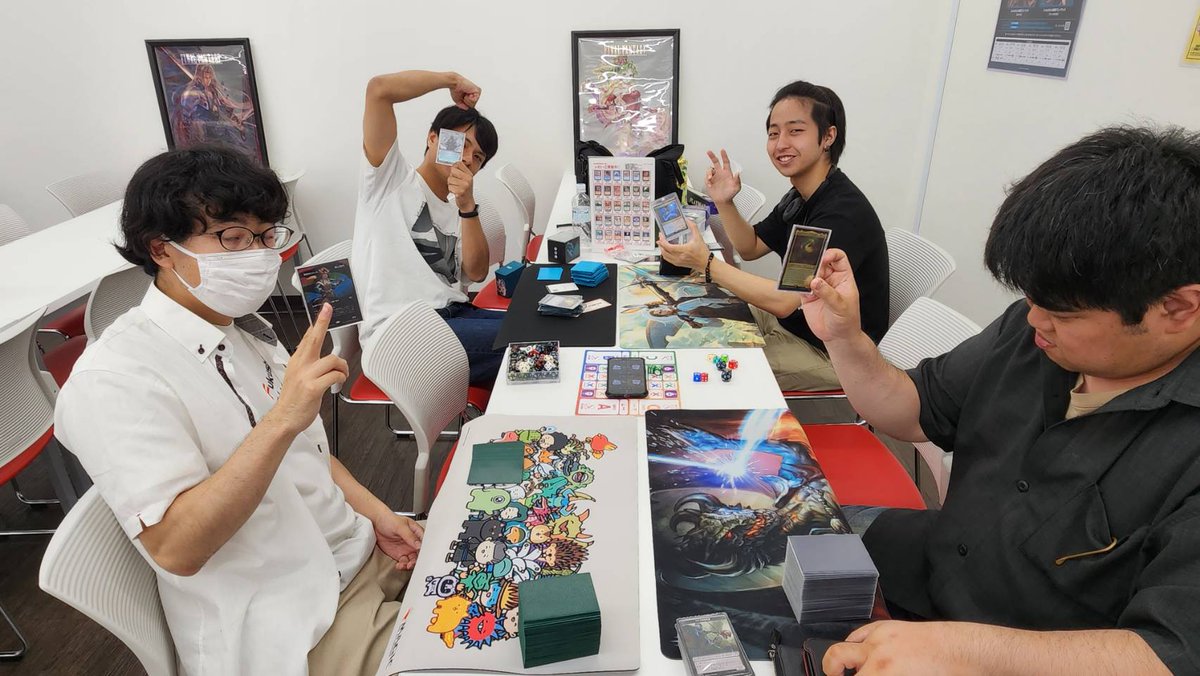 【#今日の晴れ郡】 16時開催の『統率者戦交流会』は4名様でスタートしました‼️ 14時の部から引き続きのご参加ありがとうございます🙇♀️ 勝利した方と1番卓を盛り上げた方には、晴れる屋ポイント500pt進呈😆 みなさん最後までお楽しみくださいね🙌