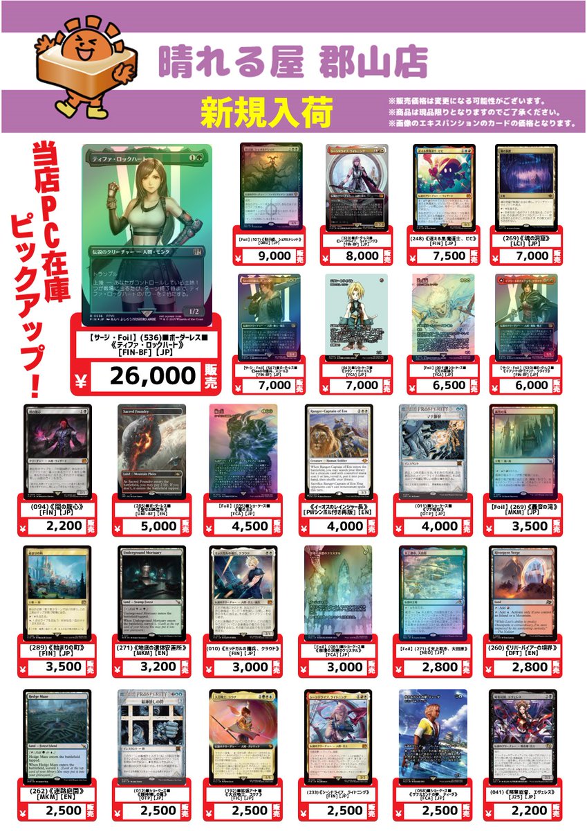 【店舗情報】 おはようございます☀️ 晴れる屋郡山店本日12時オープンです‼️ 開催イベント一覧🔽 hareruyamtg.com/ja/events/?sho… ✨本日の注目イベント✨ 1⃣じゃんけん争奪レガシー 2⃣晴れる屋スペシャルカップ パイオニア 本日も皆様のご来店お待ちしております😆