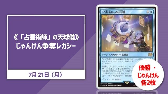 【#晴れ郡イベント】 本日13:00~のイベントは、、、 ✅じゃんけん争奪レガシー hareruyamtg.com/ja/events/4576… 🏆優勝賞品&じゃんけん大会優勝🏆 《「占星術師」の天球儀》JP×各2枚 スペルを唱えて英雄をモリモリ育てましょう💪 ご参加お待ちしております‼️
