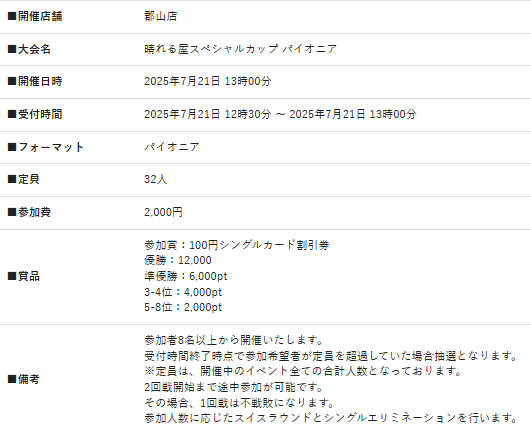 【#晴れ郡イベント】 明日開催注目イベントは、、、 ✅7/21(月・祝)13:00~晴れる屋スペシャルカップ パイオニア hareruyamtg.com/ja/events/4577… 優勝した方には晴れる屋ポイント12,000ptを進呈👏 皆さん久しぶりにパイオニアやりたくありませんか、、、🫥 ご参加お待ちしております💪