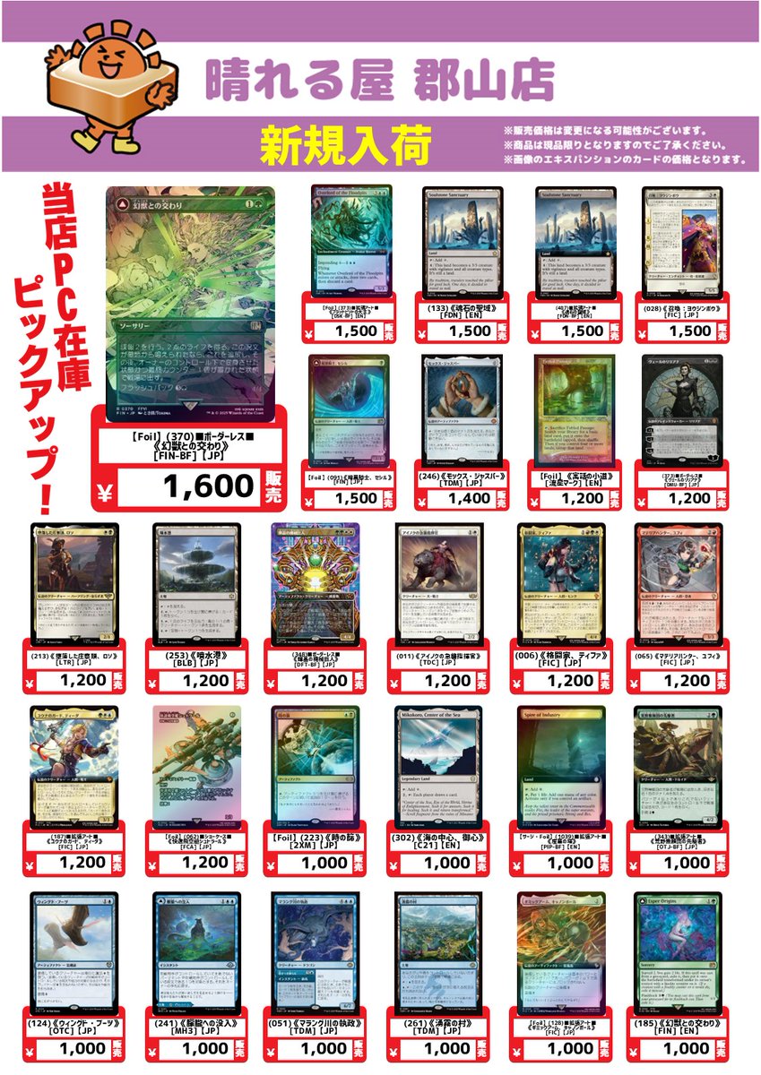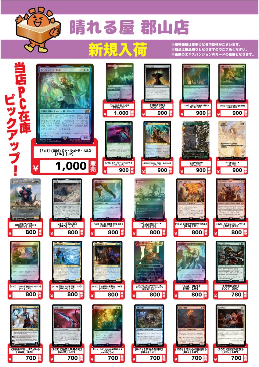 【店舗情報】 いらっしゃいませ☀️ 晴れる屋郡山店オープンしました‼️ 開催イベント一覧🔽 hareruyamtg.com/ja/events/?sho… ✨本日の注目イベント✨ 1⃣ モダン虎王決定戦 2⃣じゃんけん争奪スタンダード 本日も皆様のご来店お待ちしております😊
