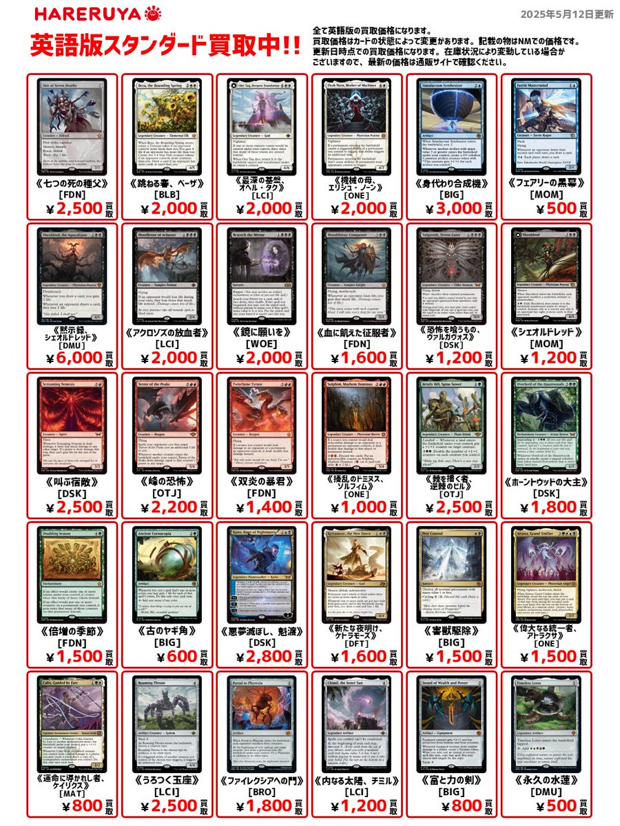 【買取情報】 英語版スタンダード買取募集中🇺🇸 《黙示録、シェオルドレッド》[DMU] ¥6,000 《身代わり合成機》[BIG] ¥3,000 《棘を播く者、逆棘のビル》[OTJ] ¥2,500 《峰の恐怖》[OTJ] ¥2,200🆙 《害獣駆除》[BIG] ¥1,500 《シェオルドレッド》[MOM] ¥1,200 ご来店お待ちしております😆