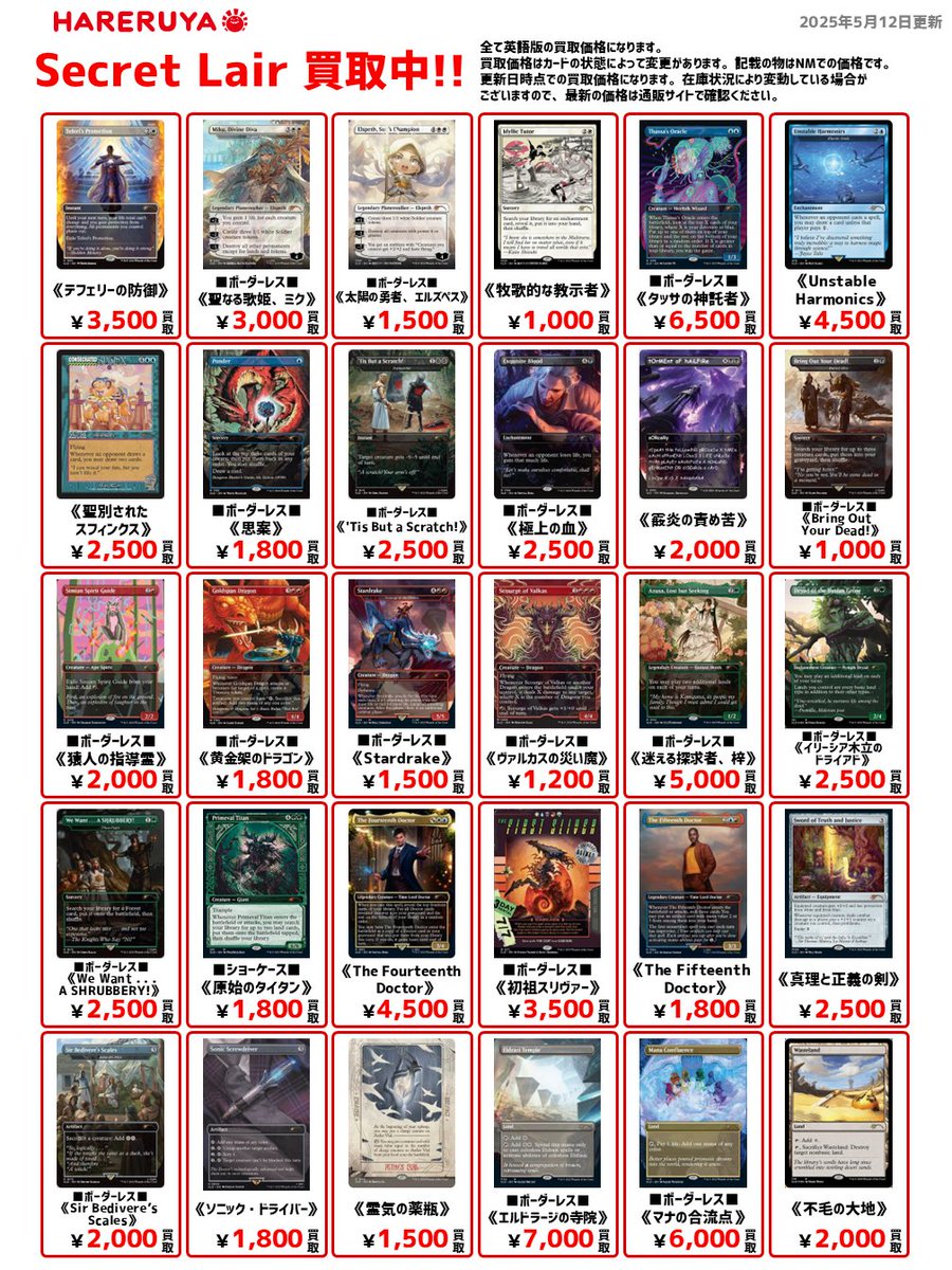 【買取情報】 🧙♂️『Secret Lair』買取募集中🧙♂️ 英語・通常版参考価格はこちら🔽 (1154)《エルドラージの寺院》[SLD] ¥7,000 (1012)《マナの合流点》[SLD] ¥6,000 (1583)《The Fourteenth Doctor》[SLD] ¥4,500 (1585)《聖なる歌姫、ミク》[SLD] ¥3,000 ご来店お待ちしております🙇♀️