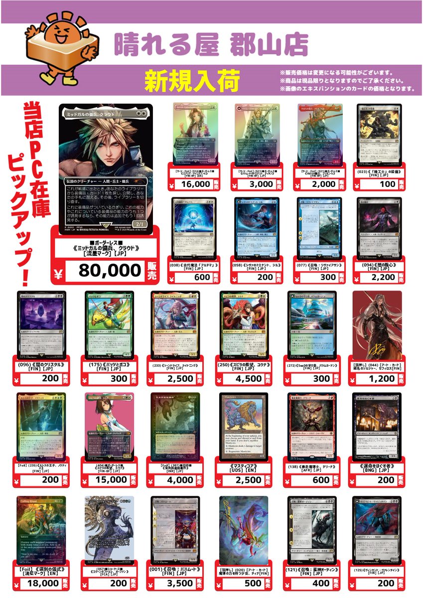 【#晴れ郡商品情報】 PC注文在庫にカードを追加しました‼️ 今回のおススメは ■ボーダーレス■《ミッドガルの傭兵、クラウド》 先日開催された 『マジック・スポットライト:FINAL FANTASY』にて配布されたプロモーションカードが入荷しました🥳 ご注文はこちらから🔽 shops.hareruyamtg.com/koriyama/produ…