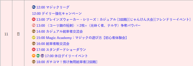 【#今日の晴れ郡】 13時開催『《コーリ鋼の短剣》×2枚+《光砕く者、テルサ》争奪パウパー』『プレインズウォーカー・シリーズ:カジュアル』は合わせて20名様にてスタート🤩 スタンダードではじゃんけん大会で勝利すると《復活した精霊信者、ニッサ》を進呈🧝♀️ 最後まで頑張ってください‼️