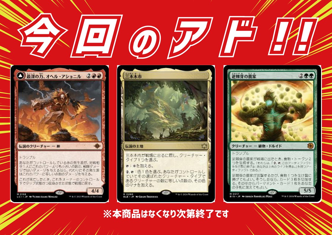 【商品情報】 「アドクレーン」新ロット追加しました‼️ 今回のアドはこちら🔽 《三本木市》🌲 《最深の力、オヘル・アショニル》🔥 《逆棘芽の農家》🌵 1回1⃣0⃣0⃣円でレッツチャレンジ💪 パックが取れればそれだけでアド🎵 晴れる屋郡山店にご来店の際は、ぜひ覗いてみてくださいね👀