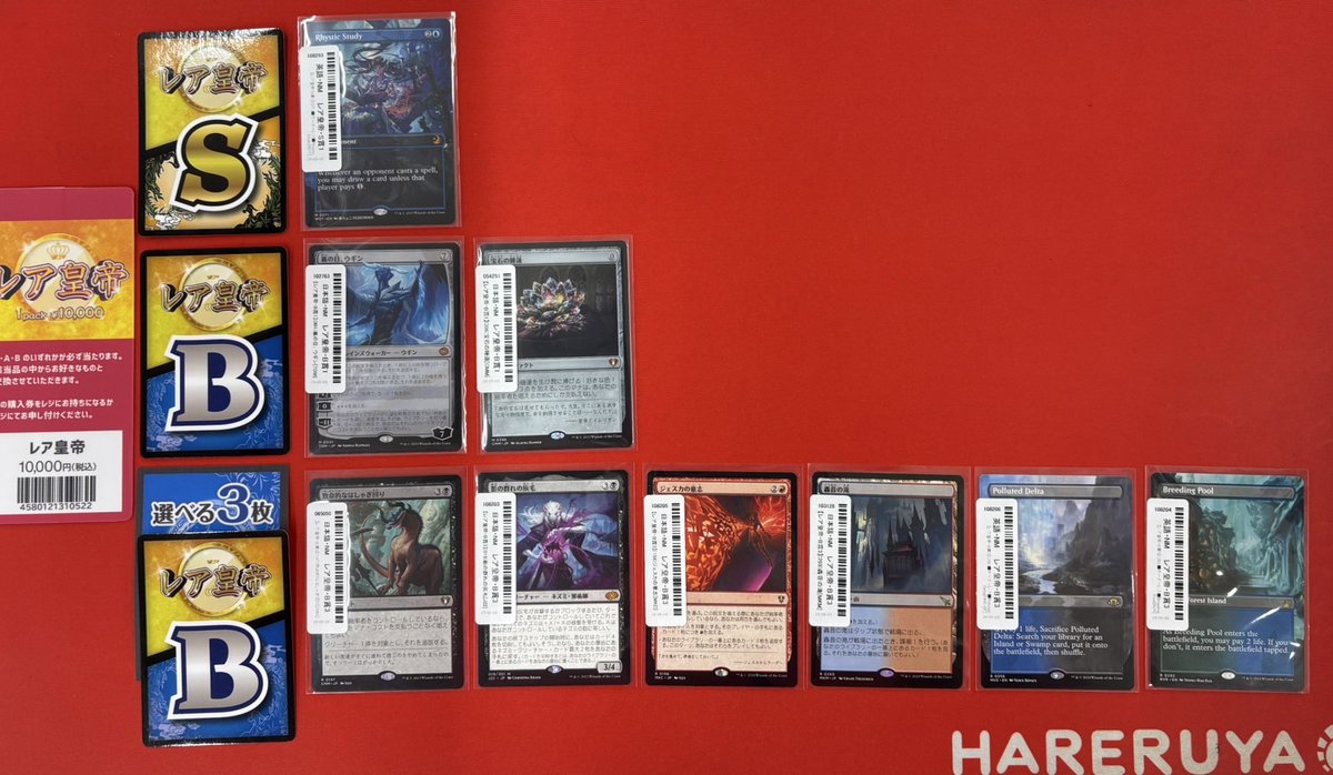 【商品情報】 大人気‼『レア孔雀』に新しくカードを補充致しました👍 🦚『超レア孔雀』🦚2,000円 🐉『レア龍王』🐉5,000円 👑『レア皇帝』👑10,000円 『レア皇帝』のS賞には■ボーダーレス■《リスティックの研究》🧪 その他にも特別な賞もご用意しております‼️