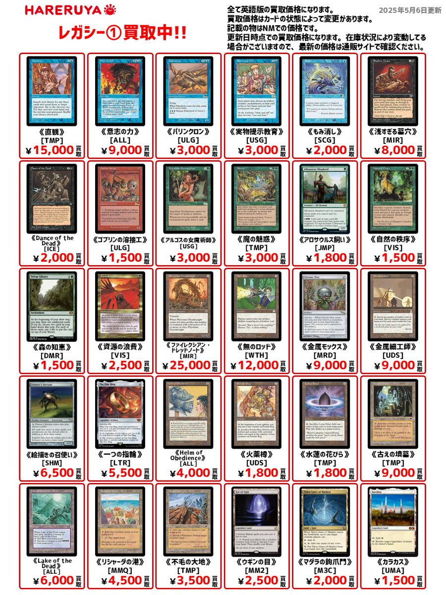 【買取情報】 🏛️レガシー買取募集中🏛️ 英語版参考価格はこちら🔽 《直観》[TMP] ¥15,000 《意志の力》[ALL] ¥9,000🆙 《絵描きの召使い》[SHM] ¥6,500 《一つの指輪》[LTR] ¥5,500 《ウギンの目》[MM2] ¥2,500 《水蓮の花びら》[TMP] ¥1,800 ご来店お待ちしております😆