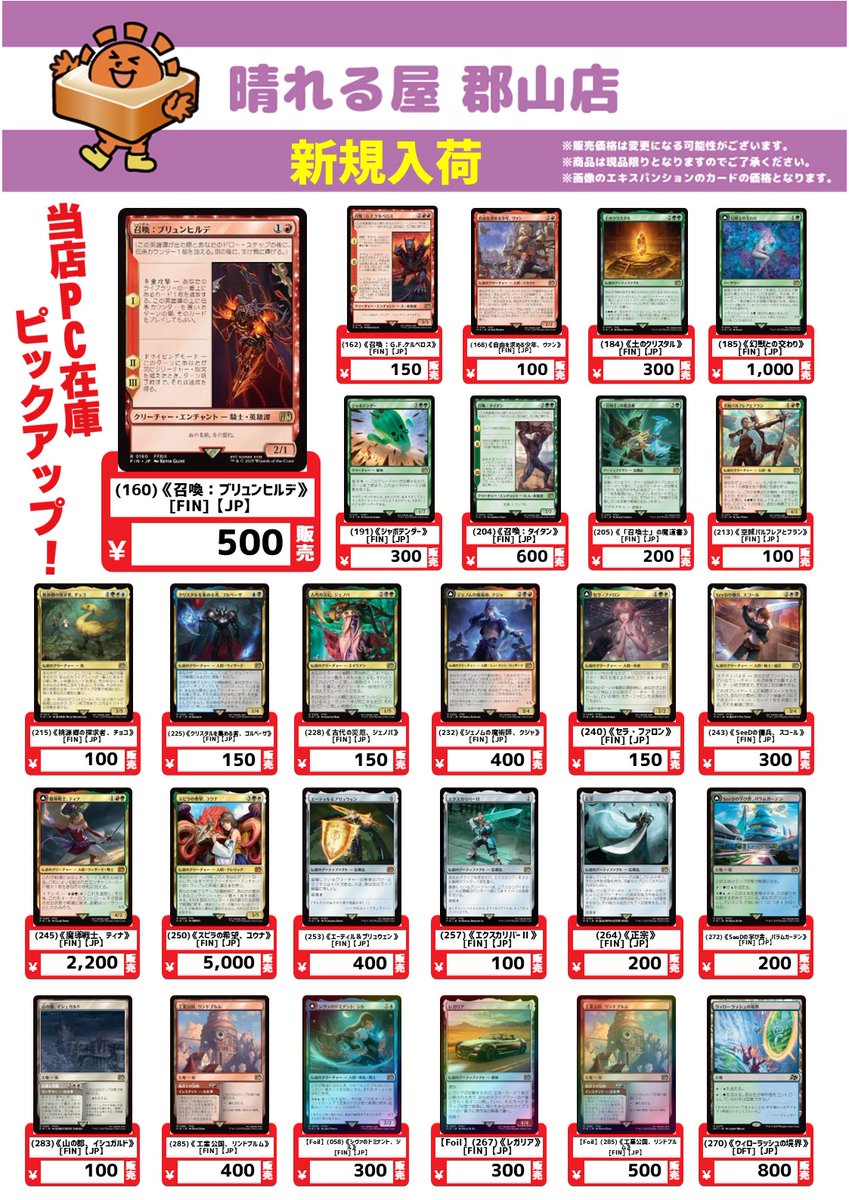 【店舗情報】 いらっしゃいませ☀️ 晴れる屋郡山店オープンしました‼️ 開催イベント一覧🔽 hareruyamtg.com/ja/events/?sho… ✨本日の注目イベント✨ 1⃣《迷える黒魔道士、ビビ》争奪パウパー 2⃣『FINAL FANTASY』限定構築戦:1対1の構築戦 本日も皆様のご来店お待ちしております🙇♀️