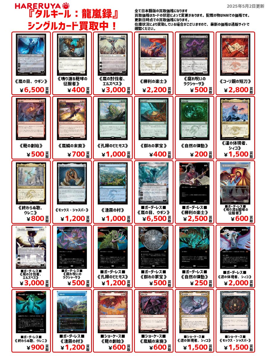 【買取情報】 🐉『タルキール龍嵐録』買取募集中🐉 日本語版参考価格はこちら🔽 《嵐の目、ウギン》[TDM] ¥6,500 《コーリ鋼の短刀》[TDM] ¥2,800 ■ボーダーレス■《道の体現者、シィコ》 [TDM-BF] \¥2,000🆙 《終わらぬ歌、ウレニ》[TDM] ¥800🆙 皆様のご来店お待ちしております🙏