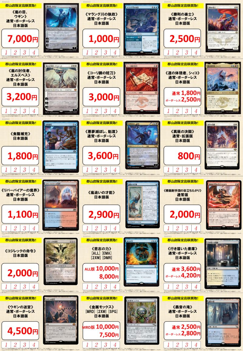 【買取情報】 ✨晴れる屋郡山店限定買取更新✨ 《嵐の目、ウギン》¥7,000 《嵐の討伐者、エルズペス》¥3,200 《道の体現者、シィコ》¥1,800/¥2,500 《悪夢滅ぼし、魁渡》¥3,600 《真昼の決闘》¥800 皆様のお持ち込み、お待ちしています‼️