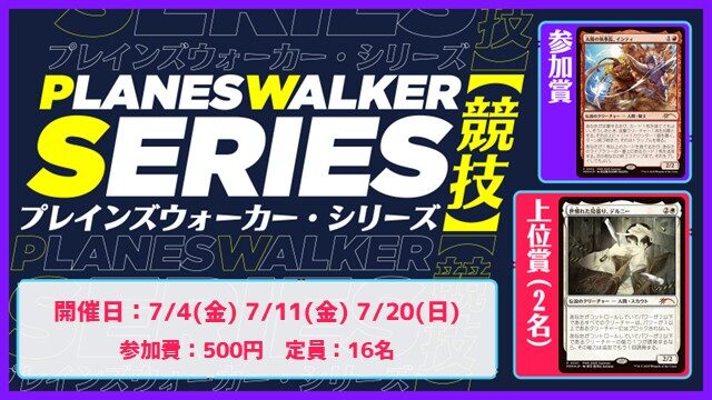 【#晴れ郡イベント】 本日19時~ 『プレインズウォーカー・シリーズ:競技』開催‼️ 🏆新プロモカード🏆 1⃣上位賞:《世慣れた見張り、デルニー》 2⃣参加賞:《太陽の執事長、インティ》 7/13(日)のストアチャンピオンシップに向けた腕試しにもどうぞ💪 皆様のご来店&ご参加、お待ちしております‼️😄