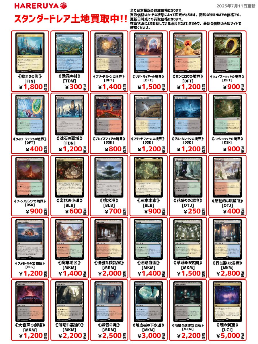 【買取情報】 🔥スタンダードのレア土地買取募集中🔥 🔽日本語・通常版の参考価格 《ブリーチボーンの境界》[DFT] ¥1,400🆙 《サンビロウの境界》[DFT] ¥1,200🆙 《グルームレイクの境界》[DSK] ¥1,200🆙 『激アツの夏!ポイント5倍キャンペーン』も実施中🍉 ご来店お待ちしております‼️🙇