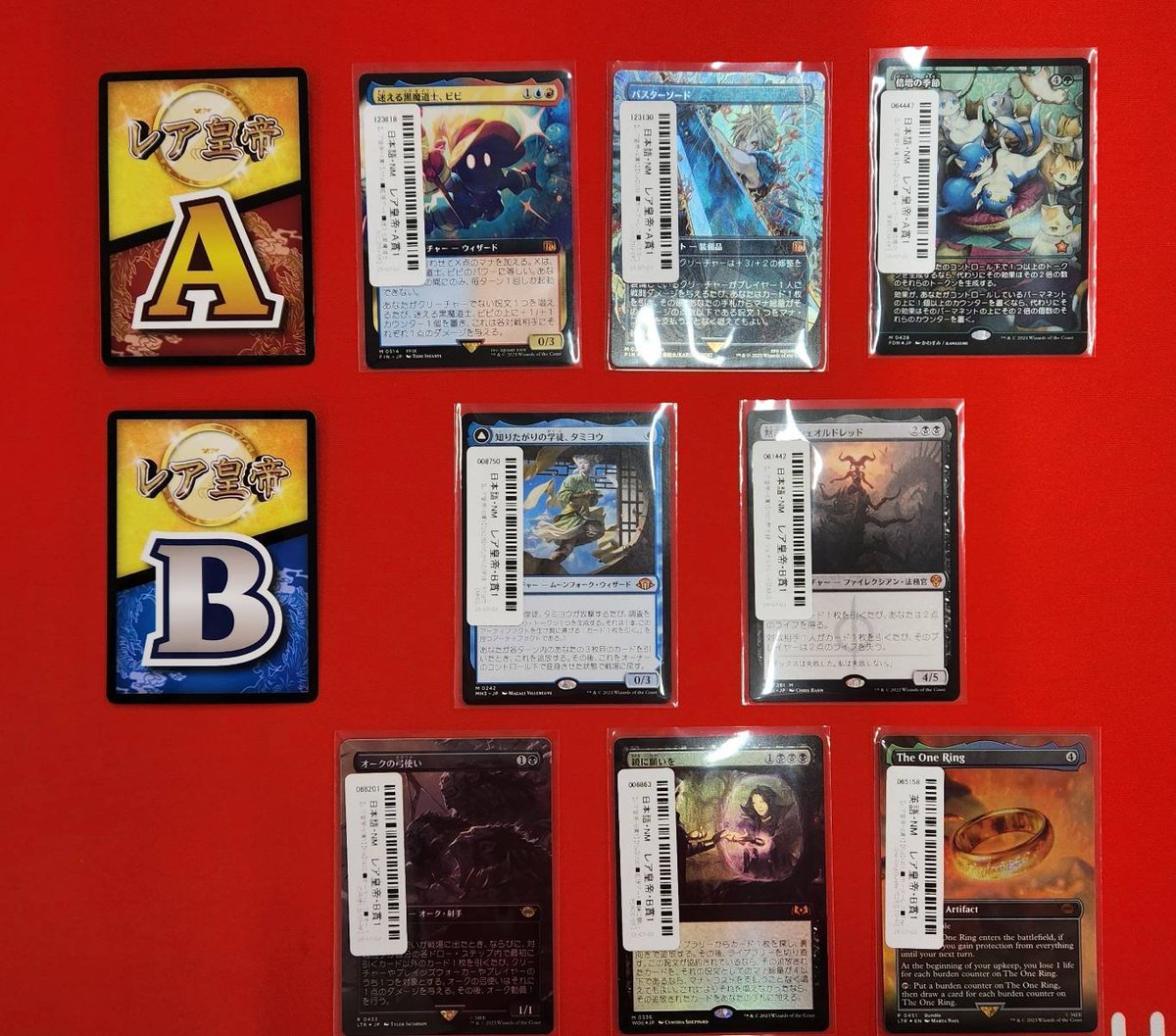 【#晴れ郡商品情報】 大人気『レア孔雀』シリーズ各賞に商品追加‼️ 👑レア皇帝👑 1回 ¥10,000 🐉レア龍王🐉 1回 ¥5,000 🦚超レア孔雀🦚 1回 ¥2,000 🎯今回の目玉👀 1⃣【Foil】■ボーダーレス■《バスターソード》 2⃣【Foil】■ショーケース■《倍増の季節》 皆様のご来店お待ちしております🔥