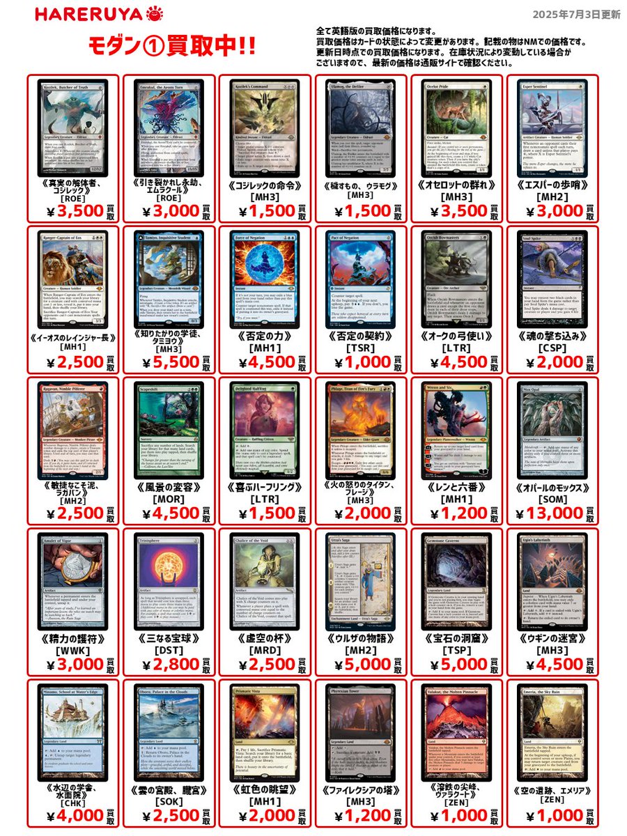 【買取情報】 ✨モダン買取募集中✨ 英語版の参考価格はコチラ🔽 《オパールのモックス》[SOM] ¥13,000 《ウルザの物語》[MH2] ¥5,000 《ナカティルの最下層民、アジャニ》[MH3] ¥1,000🆙 『晴れる屋真夏の買取キャンペーン』開催中🏝️ 1枚からでもお気軽にお持ち込みください💪
