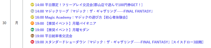 【店舗情報】 おはようございます☀️ 晴れる屋郡山店本日14時オープンです‼️ 開催イベント一覧🔽 hareruyamtg.com/ja/events/?sho… ✨本日の注目イベント✨ ✅スタンダードショーダウン『マジック:ザ・ギャザリング——FINAL FANTASY』 皆様のご来店&ご参加お待ちしております🙇