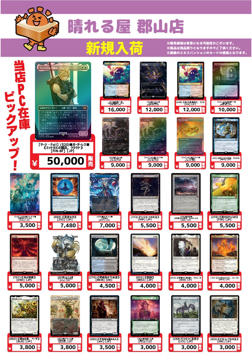 【#晴れ郡イベント】 🔰『1000円もらってMTG』開催中‼️🔰 『マジック:ザ・ギャザリング——FINAL FANTASY』から始める人、増えています💪✨ MTGを始めてみたい方は、 ✅アティ郡山8階『晴れる屋 郡山店』 までお越しください‼️ 詳しくはこちら🔽 hareruyamtg.com/ja/user_data/m… #MTGxFINALFANTASY