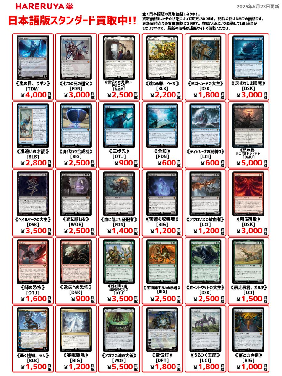 【買取情報】 郡山店では平日は14時~22時まで☀️ 土日祝日なら12時~21時まで🌙 いつでも買取の受付をしております😤 査定完了後の払出しも基本的には即日対応です💰 ご質問等ございましたら、 買取カウンタースタッフにお声掛けください🫡 ↘️買取価格一覧はこちらから↙️ hareruyamtg.com/ja/purchase/