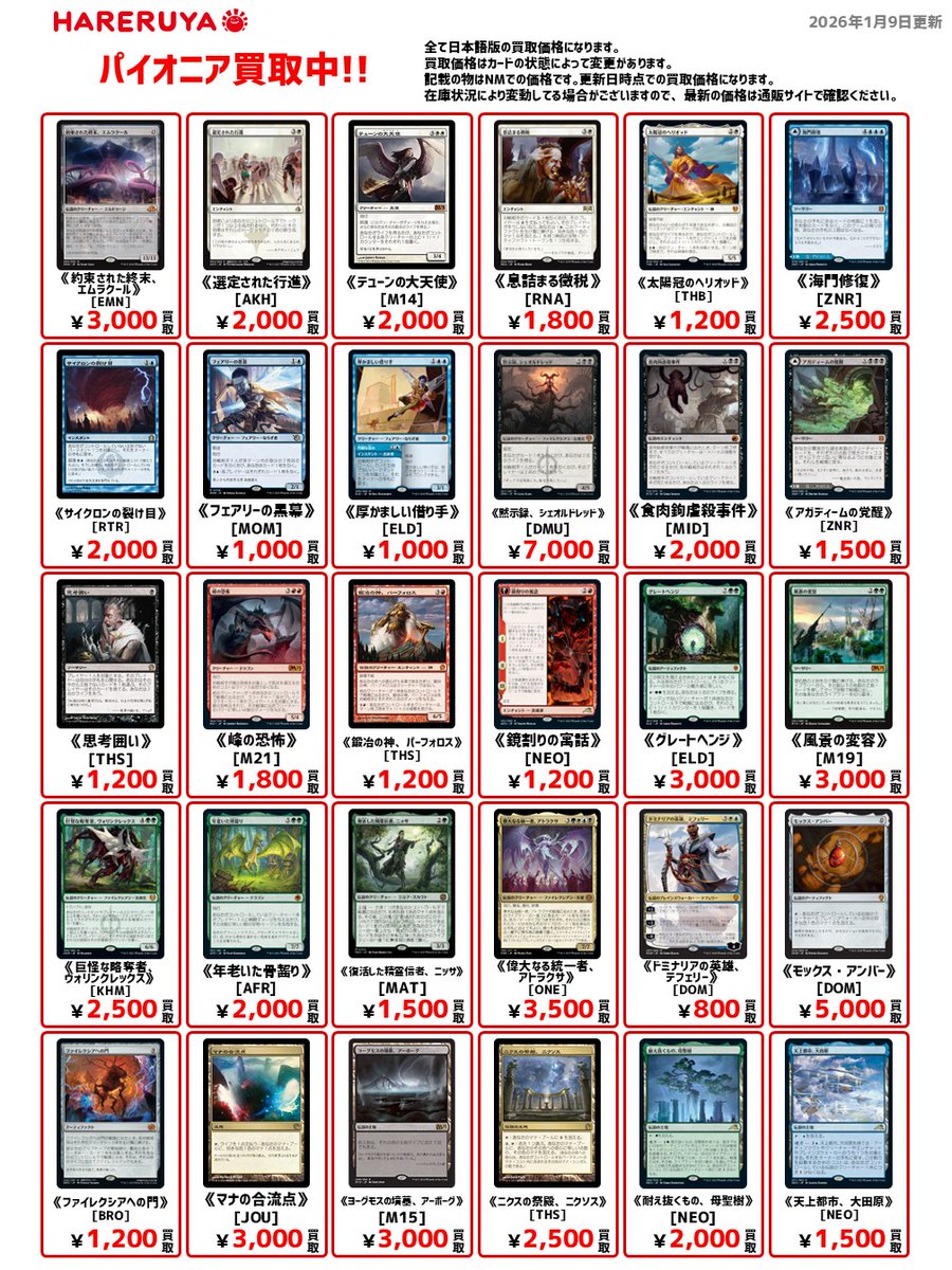 【買取情報】 🔧パイオニア買取募集中🔧 日本語版参考価格はこちら🔽 《黙示録、シェオルドレッド》[DMU] ¥7,000 《モックス・アンバー》[DOM] ¥5,000 《偉大なる統一者、アトラクサ》[ONE] ¥3,500 《息詰まる徴税》[RNA] ¥1,800 スリーブ抜き&ソート不要で持ち込みOK‼️👍 お気軽にご来店ください☀️