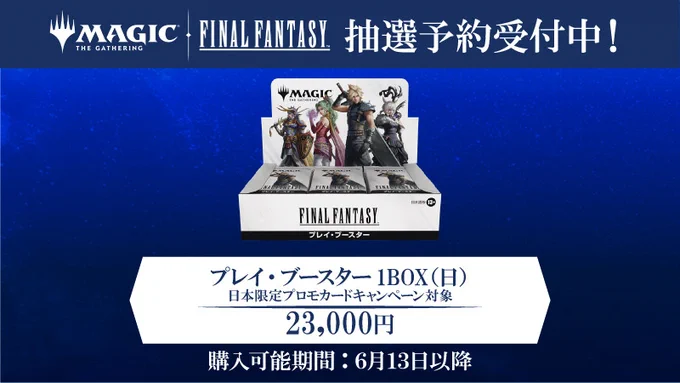 【抽選申込情報】 2次抽選締切は明日5/25(日)‼️ 申込をお忘れなく💦 『マジック:ザ・ギャザリング——FINAL FANTASY』 プレイ・ブースターBOX 日本語版 ✅抽選期間 5月19日(月)~5月25日(日) ※こちらは6月13日以降受取可能となります お申し込みはこちら🔽 docs.google.com/forms/d/e/1FAI…
