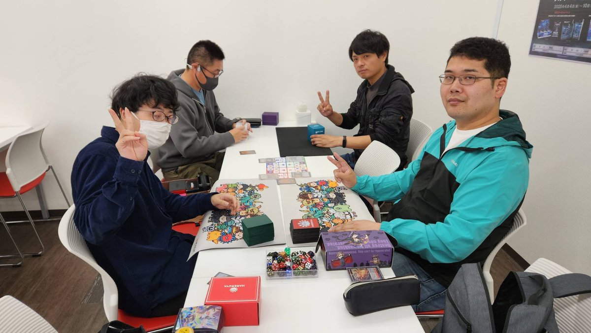【#今日の晴れ郡】 14時開催の『カジュアル統率者交流会』は4名様にご参加いただきスタートしました✨ 人間3人(?)と神……まるでモンハンですね⁉️ 勝利した方にはプロモパックを進呈🎁 皆さん最後までお楽しみください‼️
