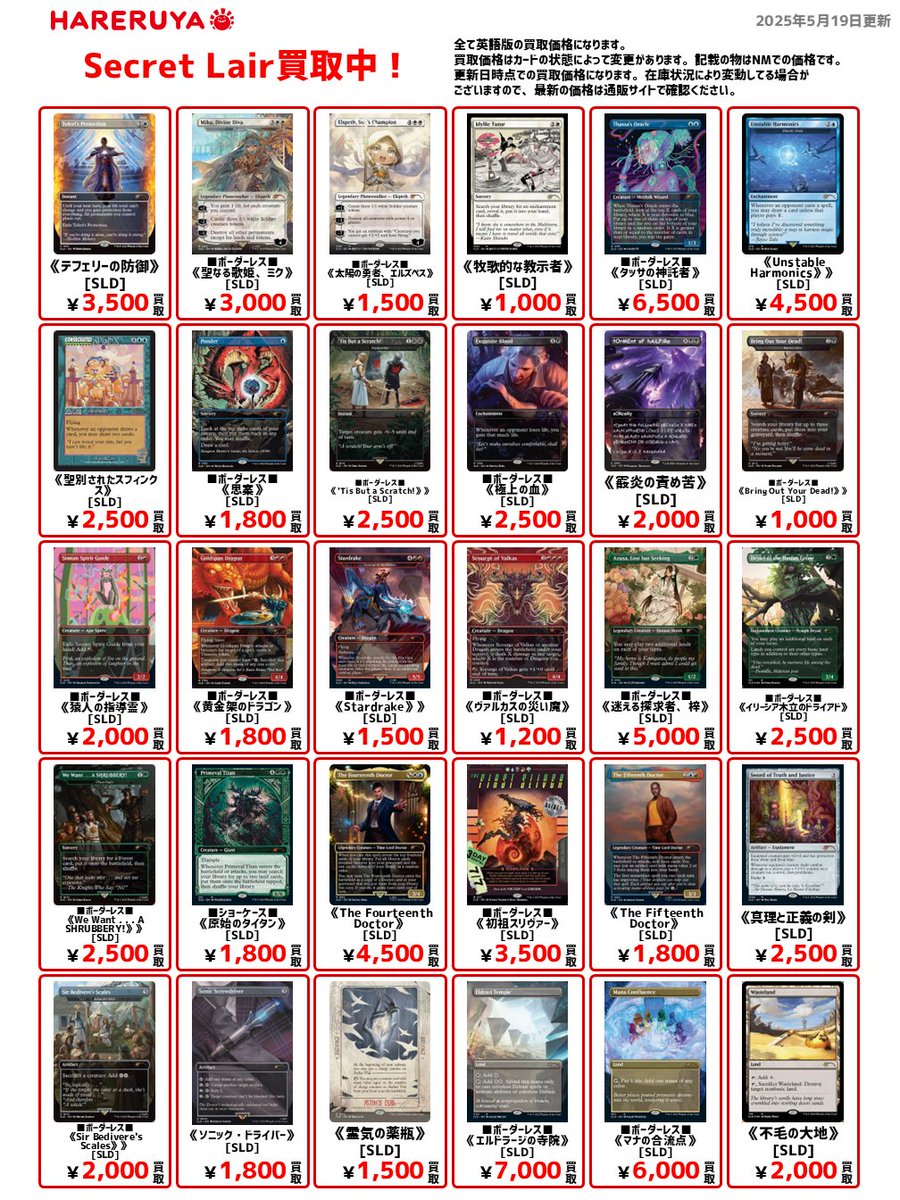【買取情報】 🧙♂️『Secret Lair』買取募集中🧙♂️ 英語・通常版参考価格はこちら🔽 (1154)《エルドラージの寺院》 ¥7,000 (1234)《迷える探求者、梓》¥5,000 (1371)《聖なる歌姫、ミク》 ¥3,000 (1640)《霊気の薬瓶》¥1,500 (1020)《牧歌的な教示者》¥1,000 ご来店お待ちしております🙏