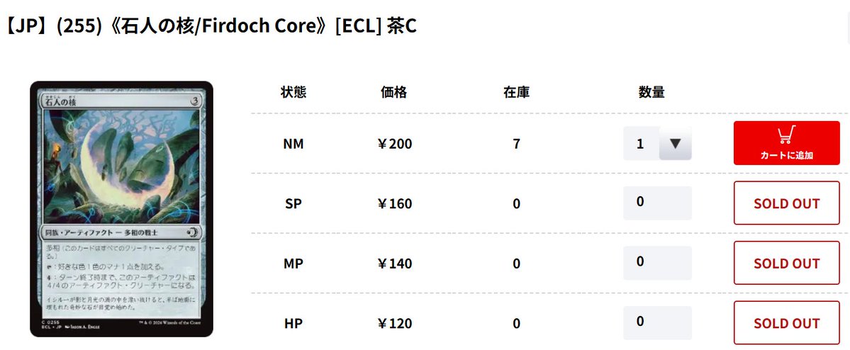 【商品情報】 ☀『ローウィンの昏明』郡山店スタッフおすすめカード🌙 《石人の核/Firdoch Core》 常時全クリーチャー・タイプを持つアーティファクト! 《不浄な別室+祭儀室》や《払拭の吐息》と組み合わせて青黒コントロールを組みたくなりますね✨ お求めはこちらから🔽