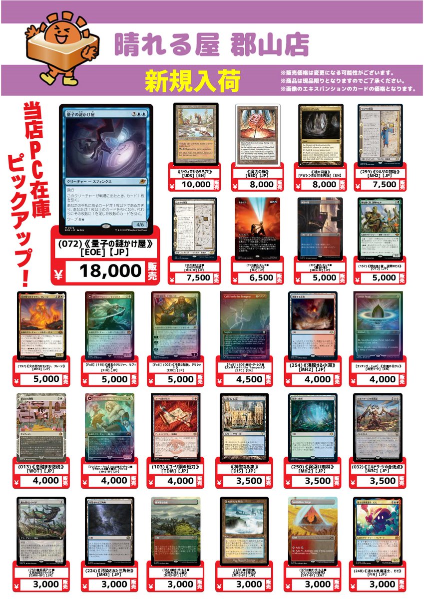 【店舗情報】 いらっしゃいませ☀️ 晴れる屋郡山店オープンしました‼️ ✨注目イベント✨ ✅年始高額争奪レガシー ✅PWSカジュアル(新シリーズ) 🔥アルバイト募集中🔥 週5フルタイム勤務は特に大歓迎! 本日も皆さまのご来店お待ちしております😆