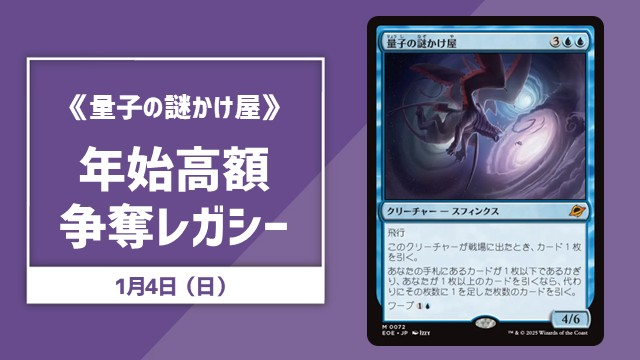 【#晴れ郡イベント】 2026年始開催注目イベントは、、、 ✅1/3(土)13:00~ 《量子の謎かけ屋》年始高額争奪モダン 2025年で評価が大逆転した一枚✨ 2026年はこのカードを手に入れて最高のスタートを切りませんか⁉️ 皆さまのご参加お待ちしております😆