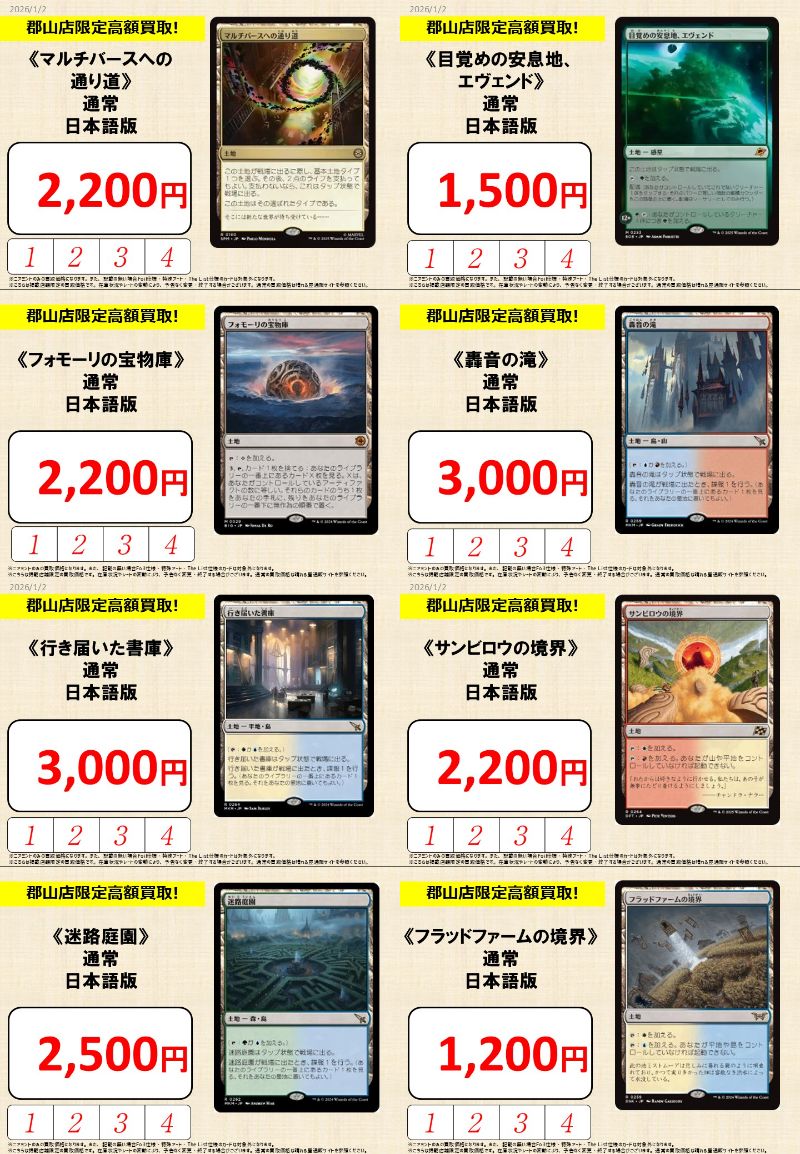 【買取情報】 『晴れる屋 郡山店』の限定強化買取中‼️② 🎯注目のカード🎯 《マルチバースへの通り道》2,200円 《行き届いた書庫》3,000円 《バロウゴイフ》3,500円 《黙示録、シェオルドレッド》8,000円 スリーブ抜きやソートは不要です🙌 買取はぜひ晴れる屋郡山店をご利用ください⛄️