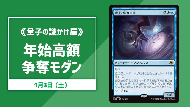 #晴れ郡イベント】 年の初めの注目イベント‼️ ✅1/3(土)13:00~ 《量子の謎かけ屋》年始高額争奪モダン hareruyamtg.com/ja/events/50… ✅1/4(日)13:00~ 《量子の謎かけ屋》年始高額争奪レガシー hareruyamtg.com/ja/events/50… 優勝者には《量子の謎かけ屋》をプレゼント‼️ 皆さまのご参加お待ちしております🙇♀️