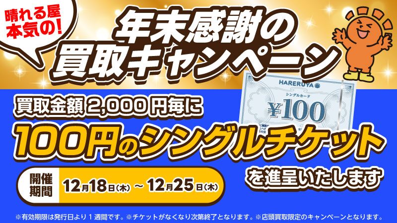 【キャンペーン情報】 『年末感謝の買取キャンペーン』は12/25(木)まで‼️ ✅キャンペーン概要 買取金額2,000円毎にシングルカード購入に使える100円券を進呈💰 例:20,000円→1,000円分、100,000円→5,000円分 年越し前の大掃除で出たいらないカードは、ぜひこの機会にお売りください‼️💨