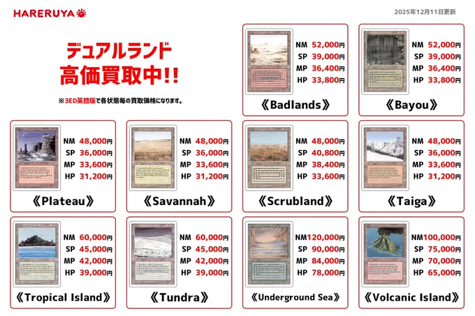 【買取情報】 デュアルランド各種、買取大募集中です❗️❗️❗️ 《Underground Sea》や《Volcanic Island》など 『デュアルランド』高価買取中💰 買取はぜひ晴れる屋郡山店をご利用ください👍
