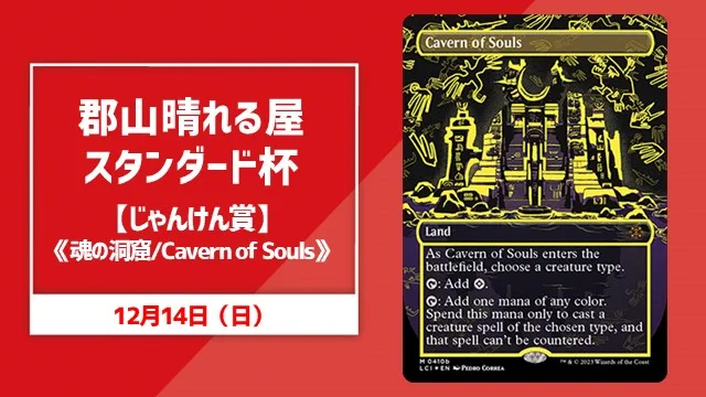 【#晴れ郡イベント】 明日開催注目イベントは、、、 ✅郡山晴れる屋スタンダード杯【じゃんけん賞《魂の洞窟》】 12/14(日)13:00~ hareruyamtg.com/ja/events/50… 1⃣参加費:¥1,000 2⃣じゃんけん賞:ネオンインク黄《魂の洞窟》 3⃣優勝:晴れる屋ポイント6,000pt 皆さまのご参加お待ちしてます😆