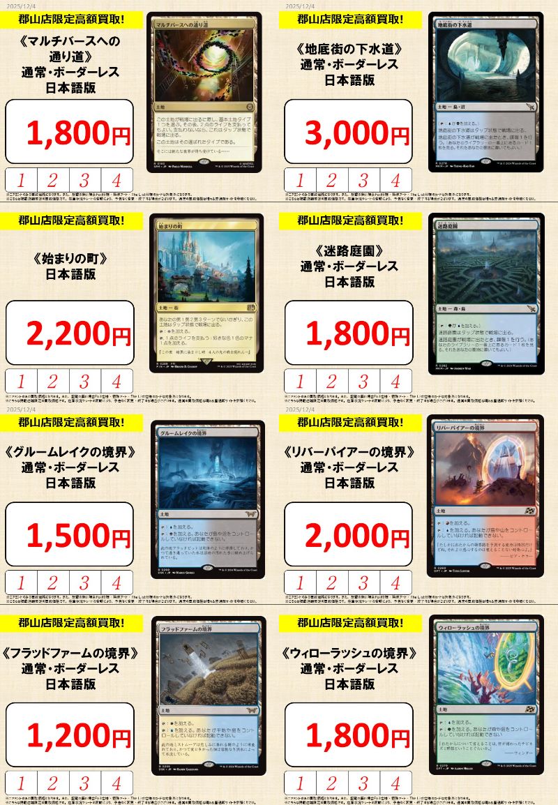 【買取情報】 晴れる屋郡山店限定の買取 🎯強化実施中🎯 《始まりの町》2,200円 《ウィローラッシュの境界》1,500円 《出産の儀》1,200円 《偏向はたき》6,000円 《影槍》2,200円 スリーブ抜き&ソート不要🙌 ぜひ晴れる屋郡山店にお持ち込みください🙇♂️